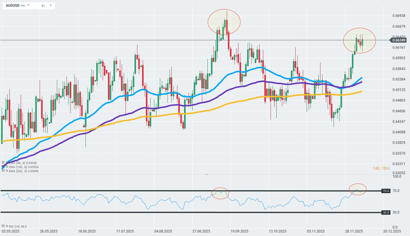The RBA kept interest rates at 3.6% as expected, but the key change lies in a dramatic shift in rhetoric towards possible hikes in 2026. Governor Michele Bullock stated outright that further cuts are not on the horizon, and the scenario assumes either a long pause or a transition to a cycle of increases. Australia is going through the shortest and shallowest cycle of cuts in the 30-year history of the central bank, with only three cuts in February, May and August. of the central bank, with only three cuts in February, May and August. The market is already pricing in almost two hikes for next year, and NAB’s chief economist warns that a hike could even come as early as the February meeting on 2-3 February. The decision was unanimous, underscoring the RBA’s determination on inflation, which stood at 3.8% y/y in October, well above the bank’s 2-3% target.