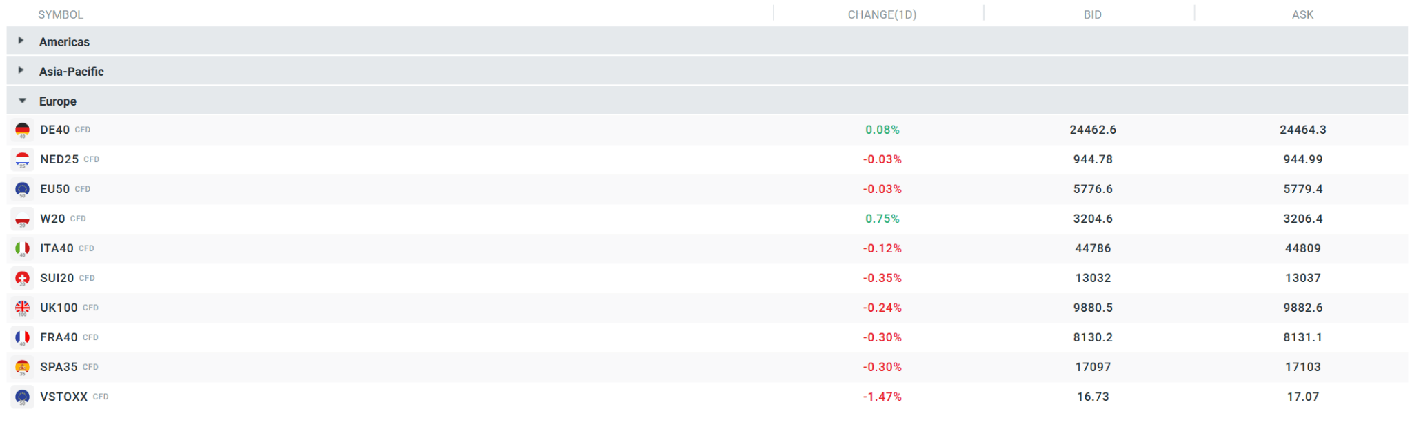 Current volatility observed on the broader European market. Source: xStation