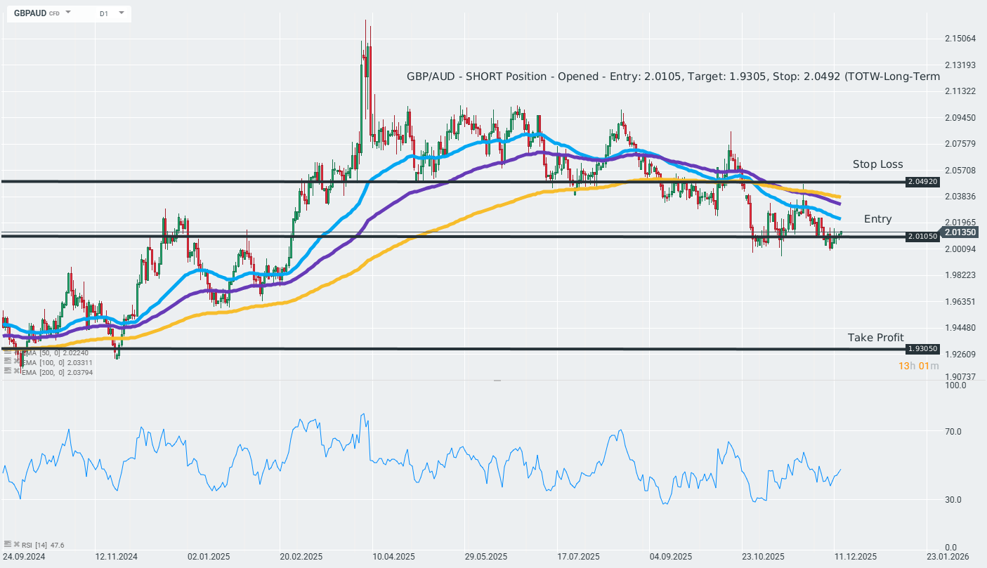 MUFG recommends taking a short position on GBPAUD at market price with a target of 1.9305 and a stop loss order placed at 2.0492. Source: xStation5