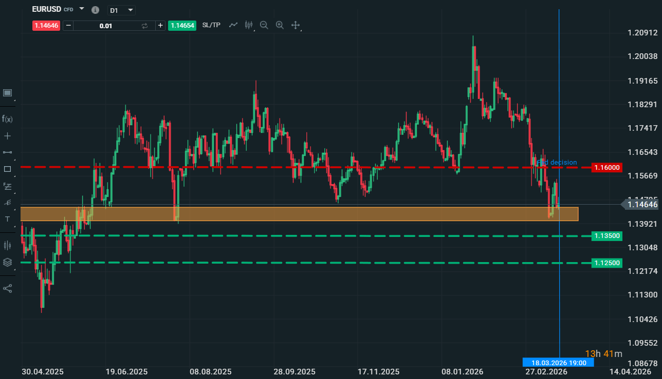 The technical break below the 1.150 level reinforces bearish momentum, and despite approaching oversold conditions, there are still no clear signals of a trend reversal. The main risk to this scenario would be a rapid de-escalation of the conflict in the Middle East or a sharp decline in oil prices.