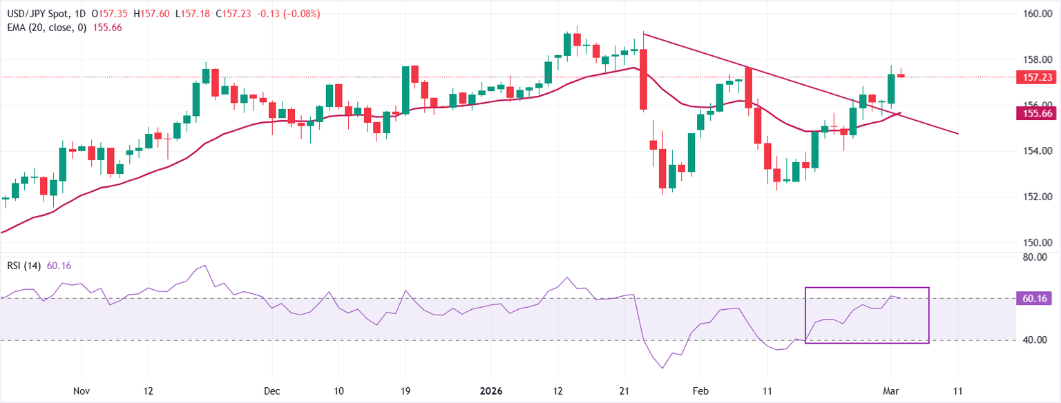 - USD/JPY trades broadly firm above 157.00 amid the US-Israel war with Iran.