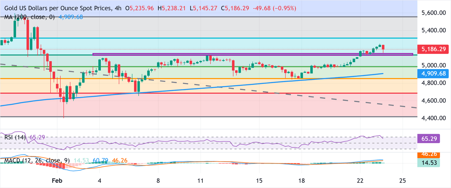 A 4-hour close above the latter would open further gains, which a failure to maintain traction above $5,123.17 would signal fading momentum and risk a deeper pullback toward the moving average. As long as the Gold holds above the rising 200-period SMA at $4,909.70, the path of least resistance stays higher.